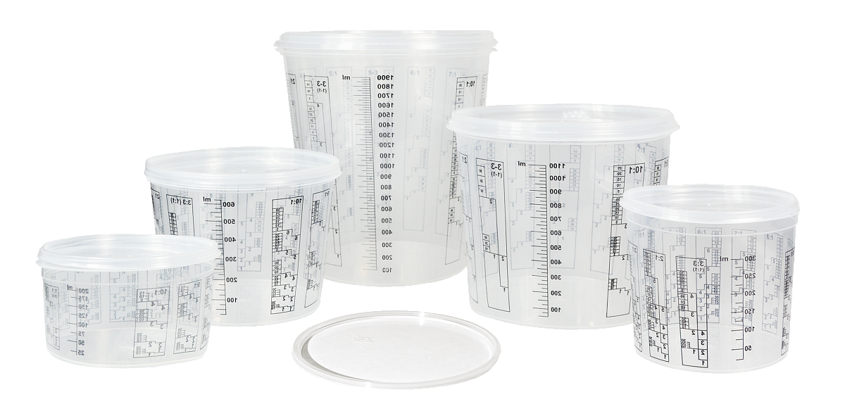 Пластиковые мерные ёмкости для смешивания ЛКМ.